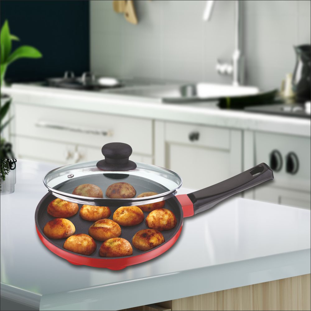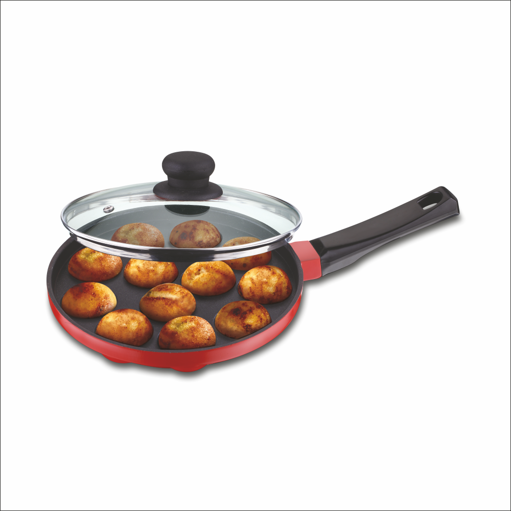 Non Stick Appe Pan (Die Cast) 22cm with Glass & Handle (Ceramic Coat) -12 CUP (KE)