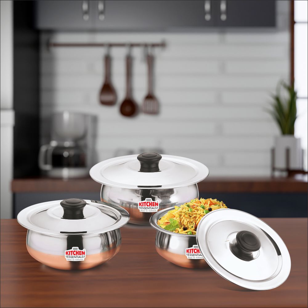 Stainless Steel 3Pcs Copper Bottom Handi with SS Lid (8,9,10)