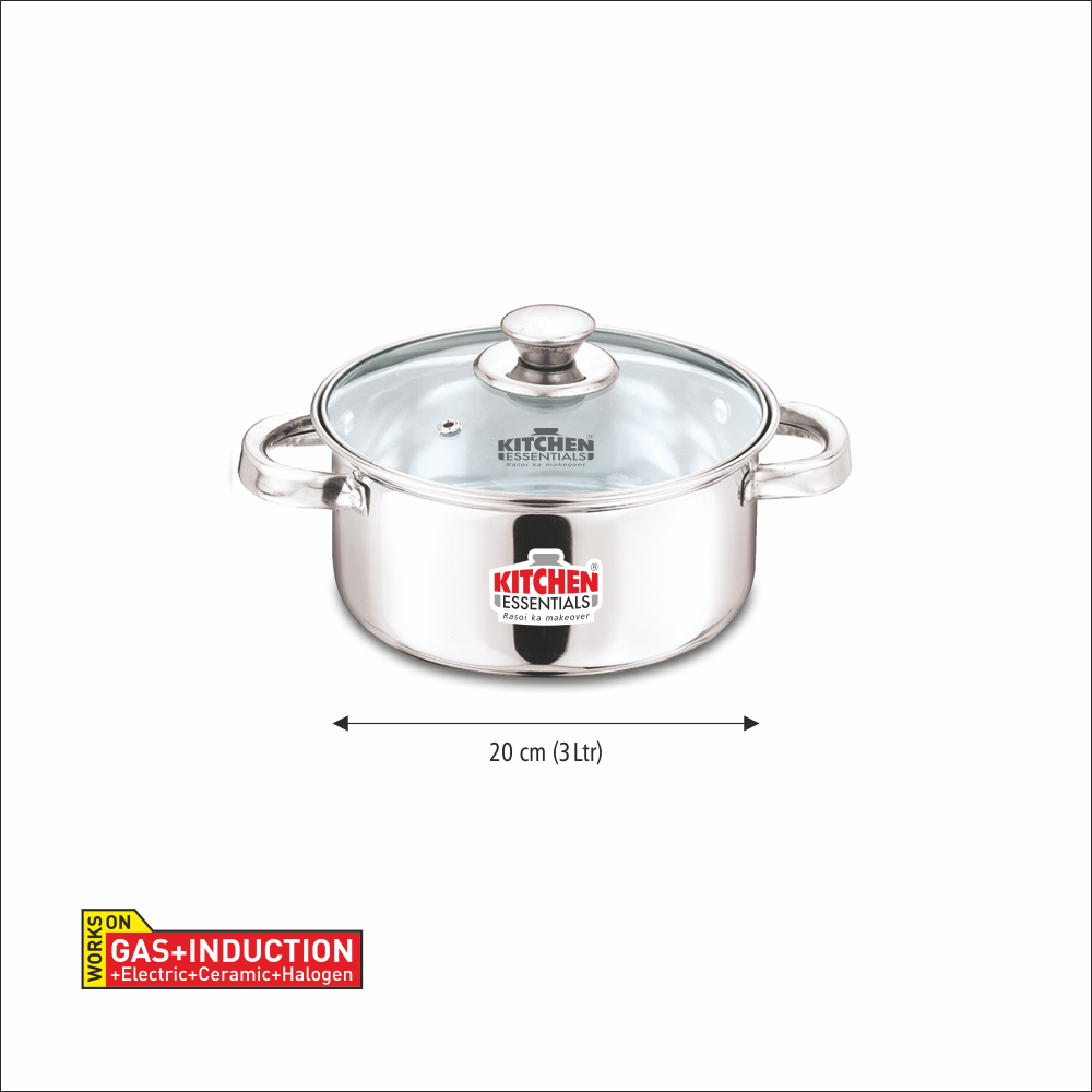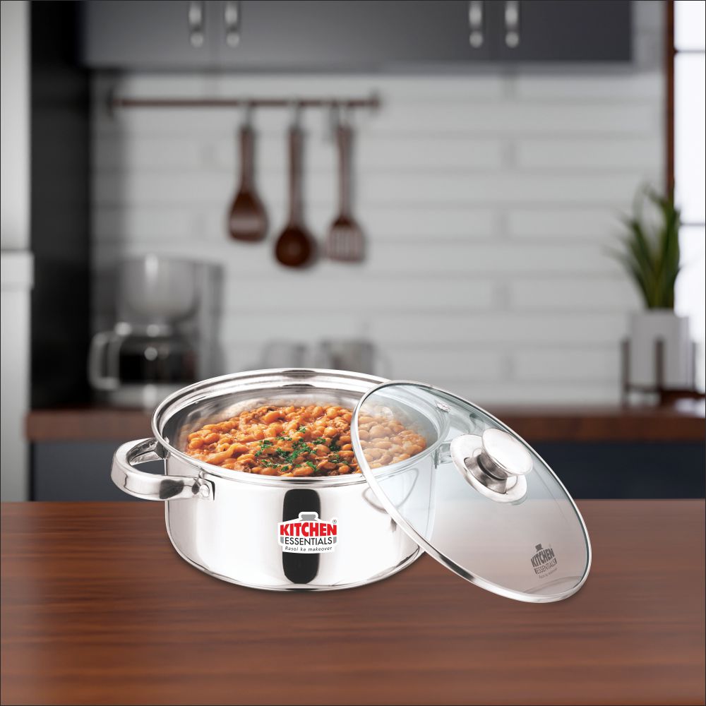 Kitchen Essentials Stainless Steel Cookware is made with high-quality food-grade Stainless Steel for longer durability and prolonged performance. Designed to withstand high degrees of heat, the cookware ensures there’s no loss of taste or nutrients when preparing food. A superior alternative to ordinary aluminium vessels, cook healthy, non-toxic meals all the time with our Stainless-Steel range of products.