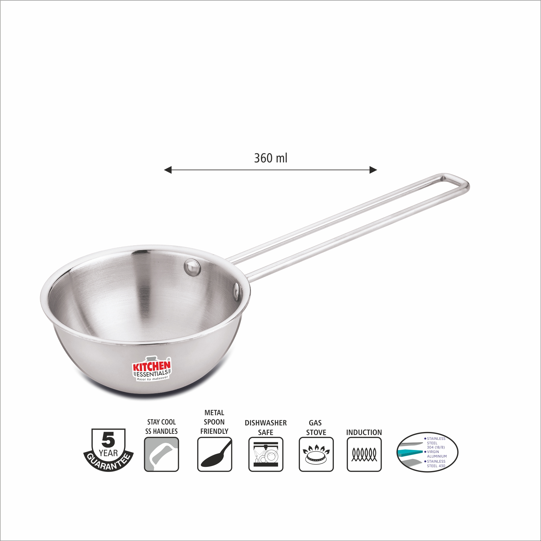 Kitchen Essentials ‘Ferstal’ Premium SS Triply Cookware is crafted using the innovative SAS technology by fusing 3 layers – Stainless Steel SS 304 (18/8), Virgin Aluminium and SS 430. The inner layer of Stainless Steel for rust-free, healthy cooking. The middle layer of Aluminium for even heat distribution & uniform cooking. The outer layer of Stainless Steel for durability and a lustrous, scratch-resistant exterior. Ferstal premium SS Cookware is manufactured in our State-of-the-Art plant. Ferstal works on both gas and induction hobs.